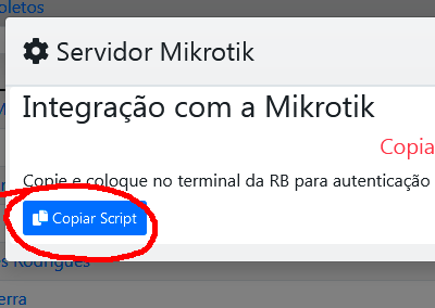 No Menu do lado esquerdo clicar em Mikrotik, depois Integrar Mikrotik.