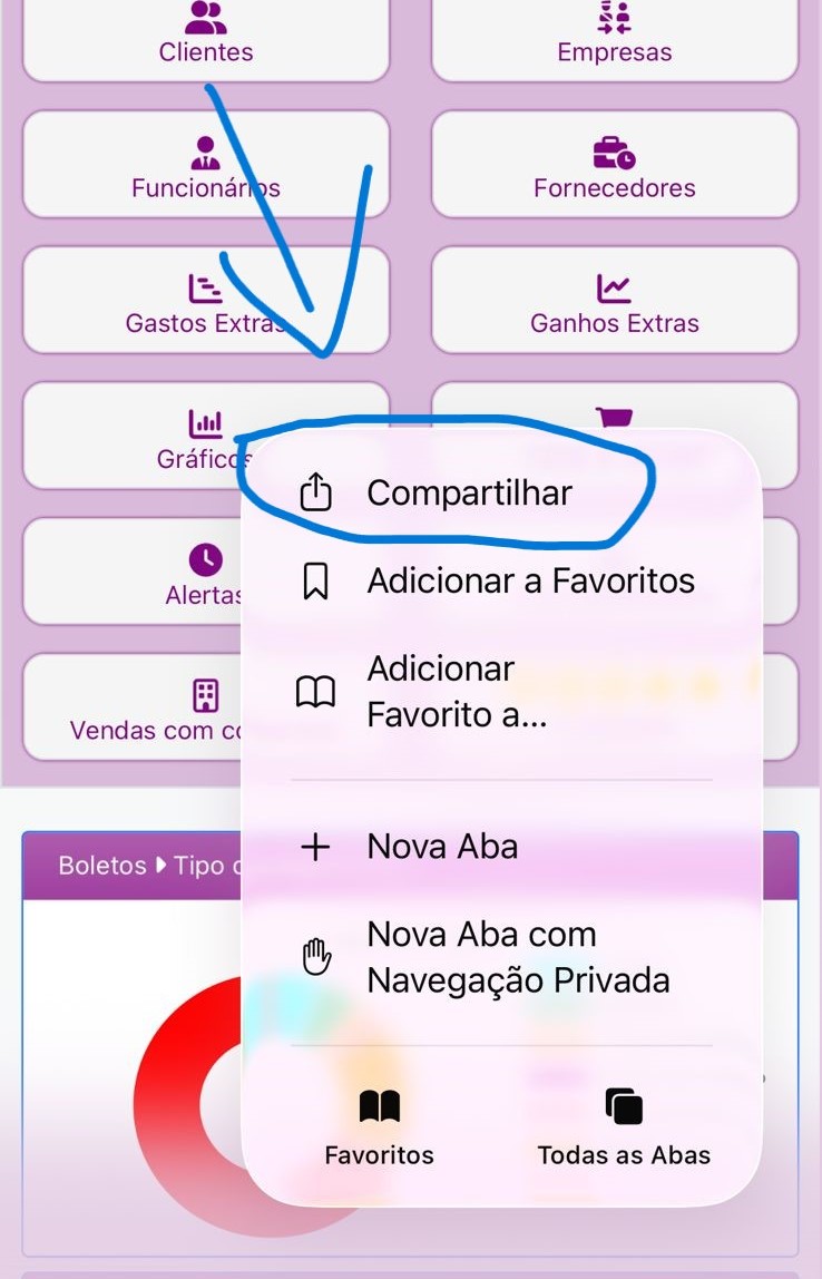 Toque no ícone de Compartilhar (quadrado com seta).